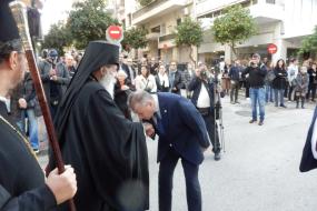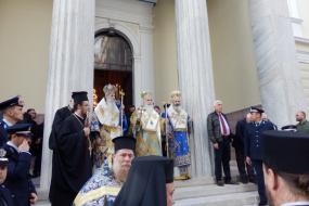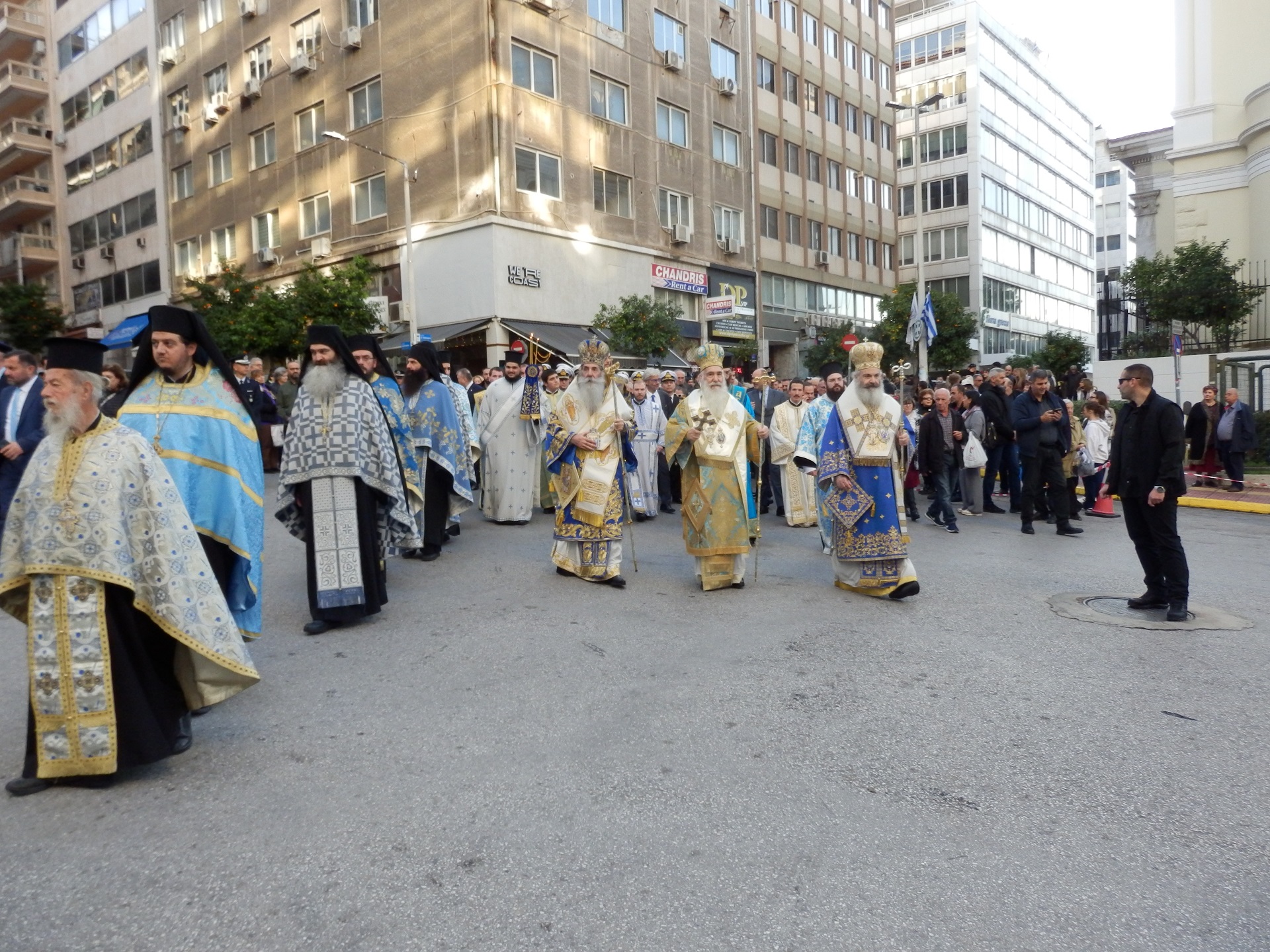 Της πανηγυρικής λιτάνευσης προέστη ο Σεβασμιότατος Μητροπολίτης Πειραιά κ.κ. Σεραφείμ, πλαισιωμένος από τον Σεβασμιότατο Μητροπολίτη Νικαίας κ.κ. Αλέξιο, του Θεοφιλεστάτου Επισκόπου Αχελώου κ.κ. Νήφωνος και κληρικούς των τοπικών ενοριών, προσδίδοντας ιδιαίτερη λαμπρότητα στη θρησκευτική τελετή.